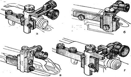 Рис. 89. Типы диоптрических винтовочных прицелов а – “Урал”, б – ТОЗ -12, в – МЦ – 13, г – “Тайфун”