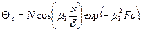 где t-температура в пластине для момента времени Если Fo>0,3, то температура на поверхности пластины (Х=1)