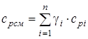 При тепловых расчетах часто приходится иметь дело со смесями газов. В подобных случаях возникает необходимость определения теплоемкости смеси. В термодинамических таблицах приводятся только теплоемкости отдельных компонентов смеси. Существуют формулы, позволяющие определять эти величины. В зависимости от того, как задана смесь, удельную теплоемкость смеси можно рассчитывать при помощи формул: смесь задана массовыми долями
