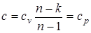 В уравнении линии процесса p×vn= const, (p1/n v= const) условие v= const удовлетворяется при n=¥, а теплоемкость изохорного процесса в соответствии с выражением равна Из уравнения состояния идеального газа p×v=Rг×T (при условии v=const) следует