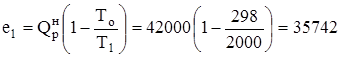 Решение. Удельная эксергия теплоты топочных газов е1 будет