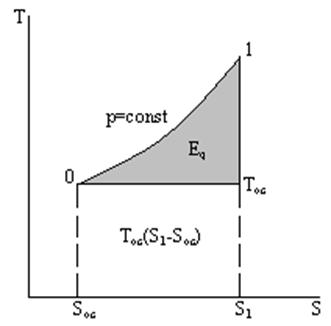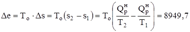 Эксергия (см. рис. к задаче 10) численно равна затемненной площади согласно приведенной выше формуле. Величина Изменение энтропии может быть вычислено следующим образом: