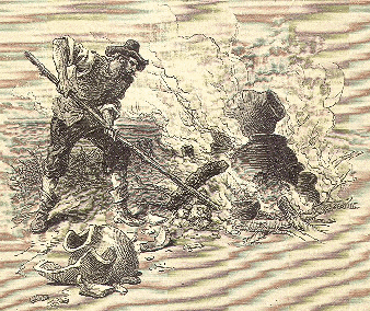 I CANNOT tell you how glad I was to get to my old house again and lie down in my good hammock bed. I had been away for nearly a month. I was so tired from my long journey that I stayed in my castle nearly a week. While I was thus resting myself, I made a cage for my parrot which I named Poll. He was very gentle for a parrot, and soon became very fond of me. Then I began to think of the kid that I had left in my summer bower. So I went with my dog to fetch it. I found it where I had left it. It had eaten all the grass inside of the fence and was now very hungry. I gave it as much as it wished, and then I tied the string to it to lead it away. But there was no need of that, for it was quite tame. It followed me everywhere. It was very gentle and loving. I had now a number of pets and was no longer lonesome. My life was much happier than it had been while I was sailing the seas. I took delight in many things that I had never cared for before. My barley and rice had grown well and in another month would be ready to be harvested. But one day I saw that some animals had been in the field. Goats and rabbits had trampled upon the green stalks and had eaten the long blades of barley. If things kept on this way I should soon lose my grain. There was nothing to be done but to build a fence or hedge around the field. This was easy, for the field was not large. I drove tall stakes into the ground all around my growing crops. These stakes were so close together that not even a rabbit could get between them. Then I tied my dog near the gate of the little field, so that he would bark whenever any animal came near. My grain was now safe from the beasts. It grew fast. The barley sent out large heads which soon began to ripen. But now the birds came down in great flocks to rob me. They sat on the fence, they flew among the stalks of grain, they carried away all the ripe barley they could find. This troubled me very much. The most of the grain was still green. But I feared that as soon as it ripened I should lose it all. I loaded my gun and went out to the field. There I saw the thieves, sitting on the fence and watching me. I was so angry that I fired right among them and killed three. "Now I will show you how to steal my grain!" I cried. I put up a long pole in the center of the field, and on top of it I hung the three dead birds. "This will I do to all that venture to come into my field," I said. Strange to say, this ended all my troubles. Not another bird came to that place so long as my scarecrows hung there. In fact, the birds went away from that part of the island, and I did not soon see another.