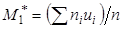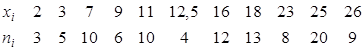 Если первоначальные варианты не являются равноотстоящими, то интервал, в котором заключены все варианты выборки, делят на несколько равных, длины При вычислении выборочной дисперсии для уменьшения ошибки, вызванной группировкой (особенно при малом числе интервалов), делают поправку Шеппарда, а именно вычитают из вычисленной дисперсии Таким образом, с учетом поправки Шеппарда дисперсию вычисляют по формуле Пример. Найти методом произведений выборочную среднюю и выборочную дисперсию по заданному распределению выборки объема