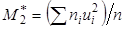 Пусть выборка задана в виде распределения равноотстоящих вариант и соответствующих им частот. В этом случае выборочные среднюю и дисперсию можно вычислить по формулам: