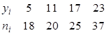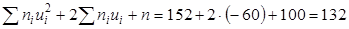 При использовании метода сумм условные моменты первого и второго порядков находят по формулам: где Таким образом, в конечном счете, надо вычислить числа Пример. Найти методом сумм выборочную среднюю и выборочную дисперсию по заданному распределению выборки объема