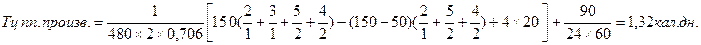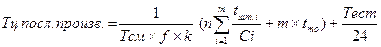 Для определения производственного цикла в календарных днях следует принимать во внимание длительность рабочей смены (Тсм), число смен в сутки (f) и соотношение между рабочими и календарными днями в году (k).