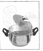 • проверить качество ручек емкости; • наполняя посуду жидкостью, не доливать до краев 4—5 см; • после закипания жидкости, убавить температуру нагрева; • снимать крышку с горячей посуды от себя (рис. 13); • закладывать в кипящую жидкость крупу и другие продукты осторожно; • снимать горячую посуду с плиты с помощью прихваток. • по окончании работы выключить плиту или электроприбор.