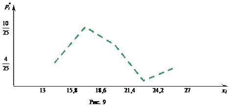 Для отриманого ряду розподілу побудуємо гістограму відносних частот (рис. 9) 4. Для переходу до дискретного ряду розподілу, припускаємо, що частоти згруповані в центрах інтервалів