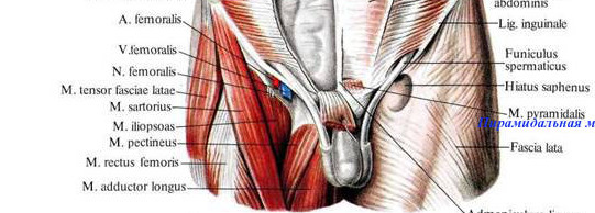 Прямая мышца живота, m. rectus abdominis (см. рис. 309-311, 315, 325, 326), парная, плоская, относится к длинным мышцам живота; залегает в переднем отделе брюшной стенки по сторонам от белой линии живота, которая тянется по срединной линии от мечевидного отростка к лобковому сращению. Прямая мышца живота начинается от хрящей V-VII ребер и от мечевидного отростка; направляясь книзу, суживается и прикрепляется к лобковой кости в промежутке между лобковым симфизом и лобковым бугорком. Поперек мышечных пучков прямой мышцы живота, прерывая их, идут 3-4 сухожильные перемычки, interectiones tendineae. Две из них лежат выше пупочного кольца, одна - на его уровне, а слабо развитая четвертая перемычка - иногда ниже его уровня.