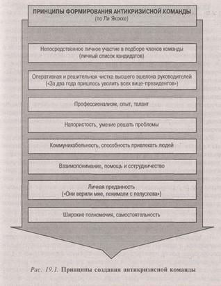 Выдающийся американский менеджер Ли Якокка, председатель Совета директоров компании Chrysler, в 1986 г. по популярности занимал второе место после президента США Рональда Рейгана. Он спас от краха в начале 80-х годов одну из корпораций «большой тройки», действующих в автоиндустрии США. При этом Якокка сделал чуть ли не невозможное, но при этом мало что взял из традиционного набора управленческих рецептов, положившись в основном на свой опыт и интуицию менеджера-коммерсанта, дух инициативы, предприимчивости и неукротимую энергию делового человека. Разрабатывая теорию и практику антикризисного управления, важно извлекать тот позитивный опыт, который накоплен лучшими зарубежными менеджерами на уровне фирмы, не повторяя их ошибок, творчески примеряя лучшие образцы и методы организации хозяйственной деятельности к нашим нуждам, к современной экономической действительности. Ли Якокка начал свою деятельность в должности председателя Совета директоров корпорации Chrysler с критически-аналитической оценки положения дел в компании. Изучение стиля управления прежнего руководства показало, что в верхних эшелонах власти отсутствует организационная дисциплина и элементарный порядок. Корпорация функционировала отнюдь не как целостная корпорация. Она состояла из скопления малых фирм, каждая из которых управлялась своим авторитарным директором, причем ни один из них не обращал внимания на то, что делали другие. В корпорации не существовало никакой системы, которая цементировала бы организационную структуру, не было практики совещаний, на которых руководители разных уровней могли бы обмениваться мнениями и вырабатывать взаимодействие между различными подразделениями, рассматривать черновые варианты проектов решений. В корпорации отсутствовала целостная система финансового контроля. Никто во всей корпорации не имел полного представления о том, как составляются финансовые планы и отчеты, и не мог дать ответа на простейшие вопросы, касающиеся ее финансового положения. В корпорации сложился нездоровый нравственный климат. Люди были запуганы, морально подавлены, нравственные ценности у многих утрачены. Отсутствовал контроль за сохранением промышленных секретов, что породило промышленный шпионаж в значительных размерах. Безопасность в части сохранения секретов и имущества не была обеспечена. Проблемы корпорации не решались в значительной степени потому, что руководство не представляло собой сплоченную единую команду. Была «неуправляемая группа индивидуальных игроков, из коих многие еще не овладели искусством игры на своем участке поля» [6, с. 183]. Все вице-президенты не соответствовали своему назначению. Карьерная политика была не продумана и осуществлялась весьма произвольно. На протяжении ряда лет людей просто перемещали с места на место. Например, сотрудника, руководившего сетью автосервиса и обеспечением запчастями в Южной Америке, перевели на пост главного бухгалтера-ревизора. Он свою должность ненавидел и, конечно, исполнял ее без надлежащей добросовестности и профессионализма. Менеджеры корпорации пользовались известностью как игроки в гольф, а не как специалисты по автомобильному делу. Низкий профессиональный и моральный уровень персонала непосредственно сказывался на неутешительных хозяйственных итогах. Дол
