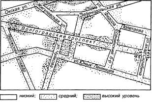 Рис. 0.9. Карта уровней концентраций токсичных веществ Волгоградского проспекта г. Москвы