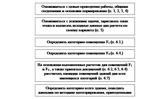 3. ОБЩИЕ СВЕДЕНИЯ Категории зданий и помещений, предприятий и учреждений определяются министерствами и ведомствами, а также технологами проектных организаций на стадии проектирования зданий и сооружений в соответствии с НПБ105-95 [1], а также ведомственными нормами технологического проектирования или специальными перечнями, утвержденными в установленном порядке. Взрывопожароопасность помещения и здания характеризуется совокупностью условий, способствующих возникновению и развитию пожара или взрыва и определяющих возможные их масштабы и последствия. Для производственных зданий эти условия в первую очередь характеризуются опасностью технологического процесса и конструктивно-планировочными особенностями здания. Технологическим процессом в основном определяется вероятность возникновения пожара или взрыва, скорость распространения и размеры пожара. От конструктивно-планировочных решений во многом зависят границы распространения пожара и его последствия.