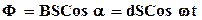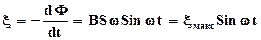 где α =ωt угол между направлением вектора магнитной индукции и нормалью к плоскости расположения рамки. При вращении рамки поток вектора магнитной индукции, пронизывающий контур, периодически изменяется и согласно закону Фарадея возникает э.д.с. индукции