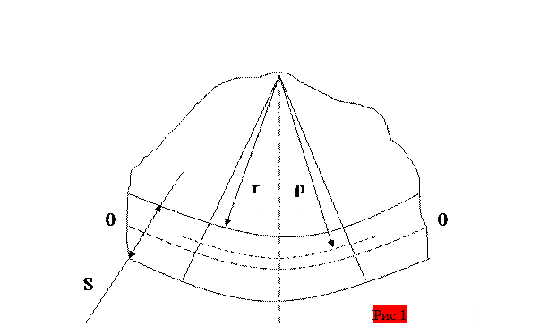 Гибка листового материала представляет собой процесс упругопластической деформации, протекающей различно с обеих сторон изгибаемой заготовки. С внутренней стороны зоны сгиба расположены сжатые волокна, с наружной – растянутые. Между растянутыми и сжатыми волокнами (слоями) металла находится нейтральный слой 00 (рис.1) который, претерпевая изгиб, не изменяет своей первоначальной длины.