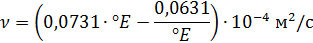 Пересчет вязкости, выраженной в градусах Энглера, в единицы измерения СИ (м2/с) производится по эмпирической формуле Убеллоде: