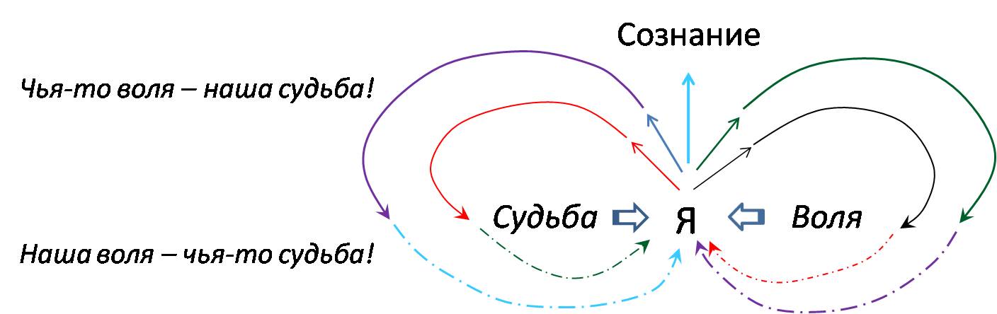 Я своей волей формирую свою судьбу. Судьба влияет на меня – это игра. Сознание вне Мира. Мир – это иллюзия сознания. Мир – это игра сознания. Сознание – наблюдатель игры. Создатель чувствует игру – созерцает. Судьба – это чья-то Воля: