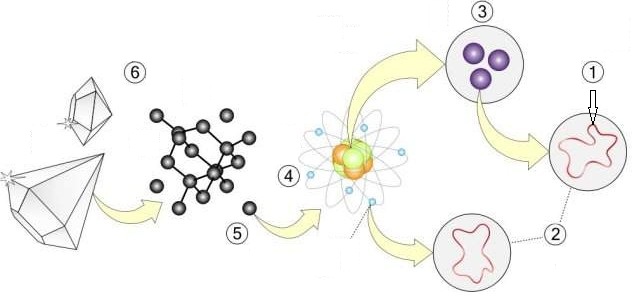 В "черных дырах" не теряется информация, там теряется дубликат. Теперь мы видим, что метагалактика стабильна и имеет определенные размеры. Метагалактики должны иметь определенные размеры, согласно основному закону периодичности – 12-й уровень (1025 метров). Метагалактика тождественна панковской частице: 1. Раскрытие тайны циферблата (число 12 и 5 секунд). 2. Функция распределения простых чисел, косвенно доказывает, что единица эквивалентна (тождественна) понятию "бесконечность". А именно: При n = 1 знаменатель становится равен нулю. В приближении сама дробь стремится к бесконечности. Единица имеет те же свойства что и бесконечности. 3. В основном законе периодичности замечаются следующие закономерности: ∙метагалактика явно имеет сферическую форму; ∙протоны и нейтроны имеют сферическую форму; ∙планеты и спутники имеют сферическую форму. Мы наблюдаем периодичность через четыре уровня. В дальнейшем мы увидим периодичность и у других уровней. Наглядно это можно изобразить так: