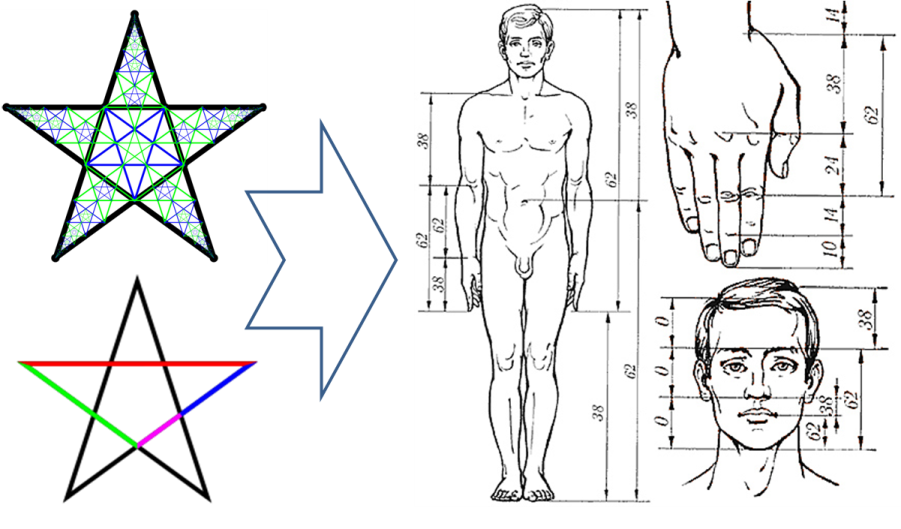 Средние размеры других уровней рассматриваются так же. Учитывая интуитивное желание сравнять первое и последнее на основании незыблемого выражения: "что наверху то и внизу", получаем: