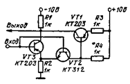Рис. 15.14 Прицезнонный детектор. Преобразователь (рис. 15.13, а) построен на двух ОУ. Двухполупериодное выпрямление реализуется путем переключения диодов. Знак коэффициента усиления меняется при смене знака входного сигнала.-Полярность выходного сигнала положительная. Положительный входной сигнал, вызывает появление положительного напряжения на выходе DA1. Диод VD1 закрывается, a VD2 открывается. Усилитель DA2 обеспечивает необходимый коэффициент усиления с помощью делителей Rl, R2 и R3, R4. При отрицательной полярности входного сигнала диод VD1 открывается, a VD2 закрывается. Отрицательная полуволна проходит на инвертирующий вход усилителя DA2. При коэффициенте усиления K сопротивление резистора равно R1 = R2(K+1)/(К-1) или R1=R3R2/(R3+R2). Рис. 15.13, б иллюстрирует передаточную характеристику схемы. Параллельный преобразователь абсолютного значения. Преобразователь (рис. 15.14) состоит из инвертора, построенного на ОУ DA1, и двух детекторов на ОУ DA2 и DA3. С помощью потенциометра R4 осуществляется установка равенства передачи положительных и отрицательных полярностей входного сигнала. В ОУ DA2 и DA3 постоянное напряжение на выходе можно скомпенсировать потенциометрами R10 и R17. В настроенной схеме динамический диапазон входного сигнала с частотами от 0 до 3 кГц лежит в интервале от 0,4 мВ до 5,5 В с нелинейностью менее 0,2 %. Частотный диапазон работы преобразователя ограничен применяемыми ОУ. Применение вместо интегральной микросхемы К153УД1 микросхем К140УД1Б и К140УД7 позволит расширить частотный диапазон до 10 кГц. Для устранения возбуждения в микросхемах К153УД1 необходимо применить корректирующие элементы: между выводами 5, 6 конденсатор С = 56 пФ и выводами 1, 5 резистор R=1,5 кОм и конденсатор С = 300 пФ.