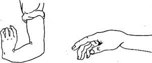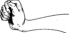Рис. 298. Приподнятая кисть при параличе сгибателей кисти.