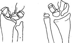 Рис. 295. Ладонное смещение кисти при флексионном переломе луча в типичном месте.
