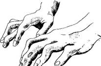 Рис. 306. Деформация пальцев рук при ревматоидном полиартрите (второй вариант).
