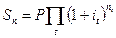 В финансовых вычислениях в случае меняющихся во времени процентных ставок используют следующие формулы
