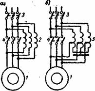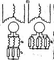 Рисунок 12.6 - Пуск двигателя а-индуктивным сопротивлением; б - переключением с треугольника на звезду