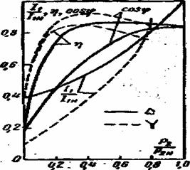 Рисунок 12.7 - Рабочие характеристики асинхронного двигателя при соединении обмотки статора треугольником и звездой