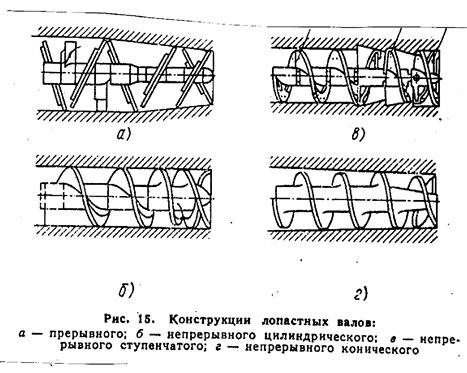 Рис.16. В окремих випадках кромку роблять широкою і вигнутою вперед. Лопатевий вал закінчується конусною вставкою 1 (Рис.18.), яка запобігає утворенню порожнин в глині по осі вала. Яка може викликати S–подібне утворення щілин або навіть наскрізний отвір.