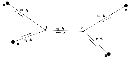 Идея способа эквивалентной замены заключается в том, что два нивелирных хода, сходящихся в одной точке, можно заменить одним эквивалентным ходом, вес которого равен сумме весов составляющих его двух ходов, и превышение по которому равно средне-весовому из превышений двух ходов. Рассмотрим нивелирную сеть, изображенную на рис.19.