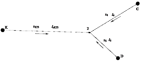 В узловой точке - репере 2, - сходятся три хода, и дальнейшая обработка сети выполняется по методике обработки нивелирной сети с одной узловой точкой, описанной выше, то есть,