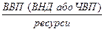Визначити: 1) ресурсні показники ефективності суспільного виробництва у базисному та звітному роках; 2) ефективності суспільного виробництва у базисному та звітному періодах; 3) абсолютну та відносну зміну ефективності суспільного виробництва, у тому числі за рахунок: - динаміки ВВП; - динаміки обсягу ресурсів. Зробити висновки. Рішення: Ресурсні показники ефективності: