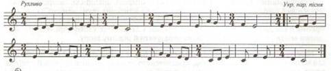 Розповідь про Л. ван Бетховена Людвіг ван Бетховен належить до тих небагатьох митців, які залишаються нашими супутниками назавжди. До його музики можна повертатися знову й знову, знаходити щось нове й нове, не помічене раніше. Ще в дитинстві ми разом із піснею „Бабак” співчували маленькому бродячому музикантові. Пізніше – захоплювалися ліричними образами його сонат. З кожним наступним твором Бетховена нам відкривався світ, в центрі якого – героїчна особистість, що бореться з долею, здатна на самопожертву та подвиг. Цей героїчний порив із надзвичайною силою прозвучав у симфоніях: Третій („Героїчній”) і П’ятій. І ось тепер ми розкрили філософію життєвого зіткнення, боротьби, перемоги завдяки бетховенським образам увертюри „Егмонт”. Не можна не дивуватися тому, що самотній, хворий, майже витиснутий з музичного світу того часу Бетховен у найтяжчі роки створював твори, сповнені мужності та душевної чистоти. Якщо вам потрібно перебороти незгоди, труднощі, повірити в майбутнє, – згадайте людину-борця та його геніальну музику. За словами Дмитра Кабалевського, Бетховен „дав людству своїм мистецтвом скарбницю радості на багато віків уперед”. III. Теорія. Особливі метро ритмічні характеристики музики. Вч. Всі музичні твори, пісня, танець або марш, виконуються у встановленому темпі, що створює певний характер. відчуття темпу залежить від того, який є проміжок між наголошеними звуками. Якщо проміжки між наголошеними звуками однакові – це строгий метр (розмір). Якщо ж, а це буває досить часто, наголошені звуки розміщені то ближче, то далі один від одного і відстань між ними часто змінюється, - це змінний метр (розмір).