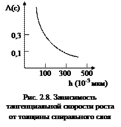 Тангенциальная скорость перемещения участка спирали с радиусом кривизны ρ при небольших пересыщениях равна