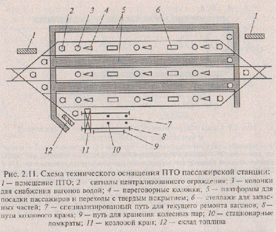 Пункты технического обслуживания пассажирских вагонов (ПТО) размещают на пассажирских технических станциях и пассажирских станциях рис. 2.11.