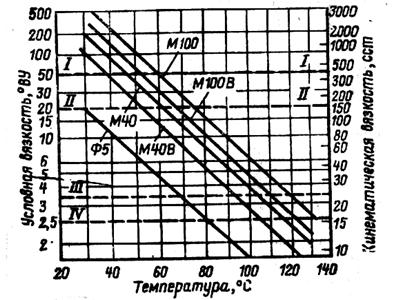 Рисунок 1.4 – Зависимость вязкости мазута от температуры