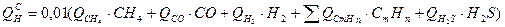 Низшая теплота сгорания сухого газообразного топлива определяется аналитически, как сумма тепла сгорания входящих в него индивидуальных горючих газов с учетом концентрации: