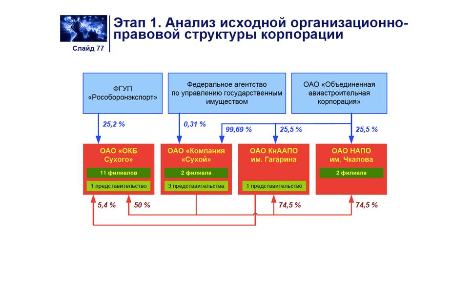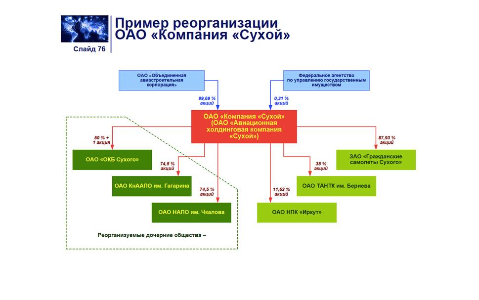 С точки зрения организационно-экономического проектирования можно выделить основные этапы/подвиды данного процесса – реорганизация, реструктуризация, реинжиниринг процессов. Реорганизация как изменение организационно-правовой структуры лица – прекращение или иное изменение правового положения юридического лица, влекущее отношения правопреемства юридических лиц, в результате которого происходит одновременное создание одного, либо нескольких новых, и/или прекращение одного, либо нескольких прежних (реорганизуемых) юридических лиц. Осуществляется в форме слияния, присоединения, разделения, выделения или преобразования. Реструктуризация как изменение организационно-управленческой структуры - это целенаправленное изменение структуры компании и входящих в неё элементов, которые формируют её бизнес, в связи с воздействиями, оказываемыми факторами внешней или внутренней среды. В процессе реструктуризации может происходить совершенствование системы управления предприятием, изменение финансово-экономической политики, операционной деятельности, систем маркетинга, сбыта и управления персоналом. Организационно-управленческая структура компании может быть представлена в виде иерархической, матричной, сетевой и др. формах. Реинжиниринг процессов как изменение организационно-экономической структуры фундаментальное переосмысление и радикальное перепроектирование бизнес-процессов для достижения максимального эффекта производственно-хозяйственной и финансово-экономической деятельности, оформленное соответствующими организационно-распорядительными и нормативными документами. При этом могут видоизменяться функции корпоративной политики, состав бизнес-процессов корпорации, а также внедряться инновационные проект корпорации. Таким образом, в рамках всех вышеперечисленных этапов организационно-экономического преобразования из исходной модели предприятий посредством разработки и реализации организационно-экономического проекта должна быть выстроена новая целевая модель организации, критерием при этом является наличие положительного синергетического эффекта. [48]
