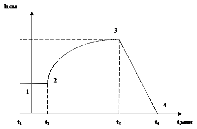 Рисунок 2.3 - Типовая кривая изменения давления 0 – 1-линия изменения давления при спуске прибора после открытия нижнего клапана 1 - 2 - линия стабилизация давления, после остановки-прибора на заданной глубине 2 -а- 3 - кривая восстановления давления, после Закрытия скважины 3- 4 - линия уменьшения давления при подъеме прибора. Давление зарядки следует определить по формуле