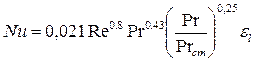где v - скорость, м/с; Δt - разность температур воздуха и поверхности воздушной прослойки; t- средняя из этих температур; d -эквивалентный диаметр. Для турбулентной области течения (Re> 2*103) в каналах