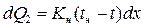Величина dQ1 (тепло, передаваемое через внутреннюю часть ограждения) равна