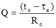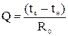 На основе закономерности теплопередаче при установившемся потоке теплоты этот поток Q, Вт/м2, проходящий за 1 секунду через 1 м2 ограждения, определяется по формуле: