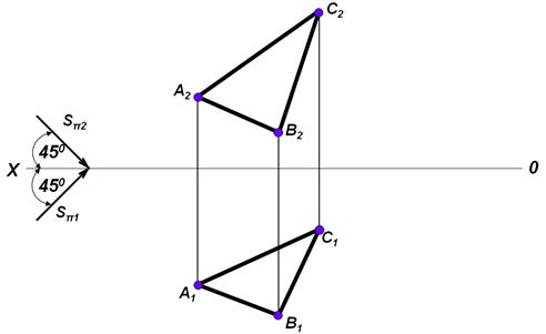 Построить тень, падающую от треугольника АВС