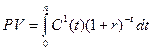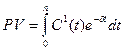 Вопрос 2. Непрерывные переменные потоки платежейПри изучении денежных потоков предполагалось, что денежные поступления сконцентрированы на одной из границ временного интервала. Таким образом, например, считалось, что ожидаемый в течение Другой способ оценки частых денежных поступлений – оценка их как непрерывного денежного потока. Рассмотрим интервал времени