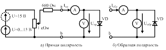 Экспериментальная часть. Задание: снять вольтамперную характеристику полупроводникового диода в прямом и обратном направлениях