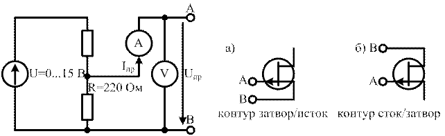Рисунок 5.4 – Схема для выполнения эксперимента по изучению характеристики включения р-n между затвором и каналом полевого транзистора