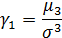 Если коэффициент вариации меньше 33%, то считают, что вариационный ряд является однородным и не нуждается в разбиении на части. Важными характеристиками вариационного ряда являются также эксцесс и асимметрия: Характеристики асимметрии и эксцесса. В симметричном распределении каждый момент нечетного порядка равен нулю. Любой момент неравный нулю можно считать характеристикой асимметрии данного распределения. Определение. Пусть μ3 обозначает третий центральный момент: