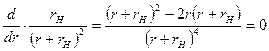 Для получения берем первую производную дроби по r и приравниваем ее нулю.